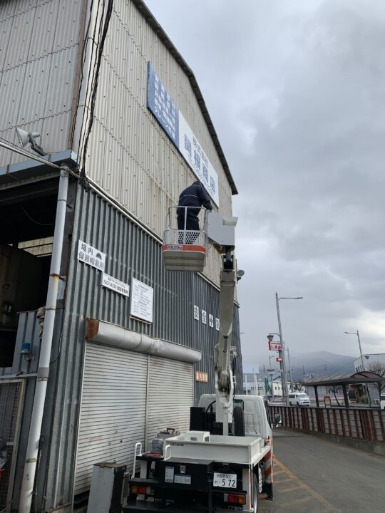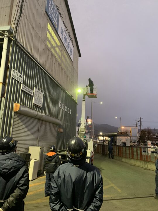 従業員のT君とF君コンビが寒い中、高所作業車で作業してくれました。