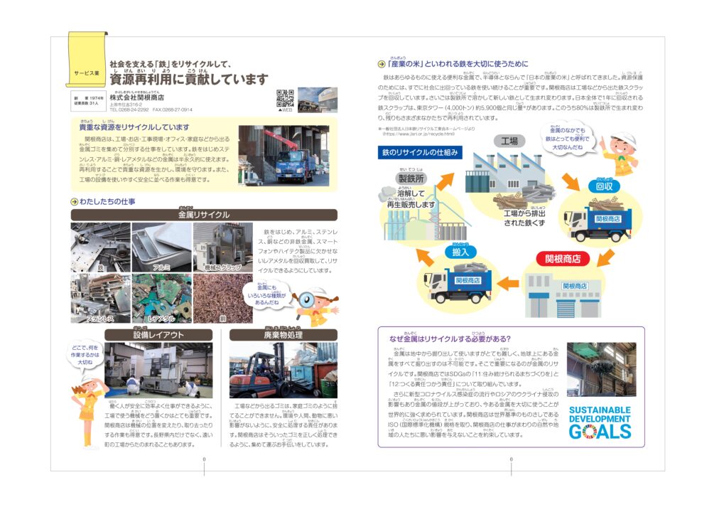 この度、株式会社関根商店は、子どもたちに、地域の産業に興味を持ってもらい、長野県内各地の企業がどのような仕事をして、どのような場面で役に立つ製品・サービスを提供しているかなど「仕事の価値」や「社会的意義を」小学生にもわかりやすいイラストと平易な言葉で表現した社会科の副読本「わたしたちの街の社会見学2025 上田・東御・小県版」へ今年も協賛を行いました。